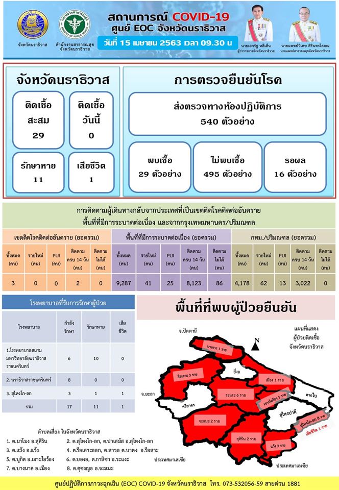อัพเดตสถานการณ์ COVID -19 จังหวัดนราธิวาส ประจำวันที่ 15 เมษายน 2563