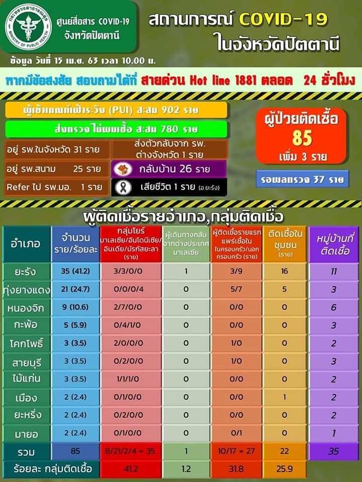 อัพเดตสถานการณ์ COVID -19 จังหวัดปัตตานี ประจำวันที่ 15 เมษายน 2563