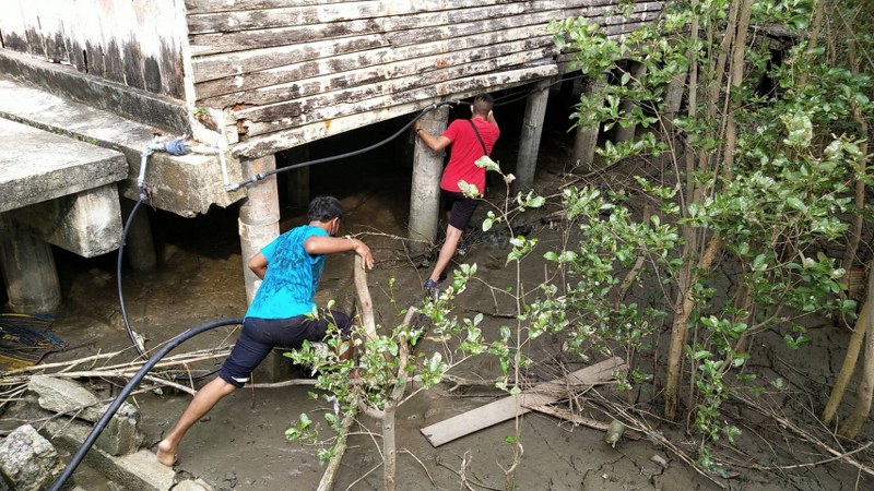 ในขณะทำการเข้าจับกุม ทั้งสองขับรถจักรยนต์หลบหนีไปอย่างรวดเร็ว จนเจ้าหน้าที่กู้ภัยฯ พบรถจักรยนต์ของทั้งสองจอดอยู่บริเวณหมู่ 3 บ้านหาดหอย และมีรอยเท้าเดินไปยังบ้านร้างป่าชายเลน ก่อนเจ้าหน้าที่จะติดตามไปจับกุม นายธนาวุฒิหรือเถิง สัญชาติกัมพูชาได้ ส่วนนาย ศุภกษ์ หรือใหม่ ได้หลบหนีไปพร้อมเงินที่สายลับทำการล่อซื้อ
