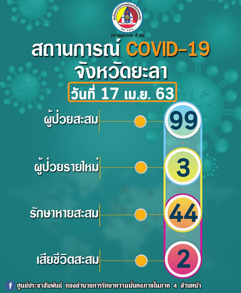 อัปเดตการยืนยันยอดผู้ป่วย COVID – 19 ในพื้นที่จังหวัดยะลา ประจำวันที่ 17 เมษายน 2563