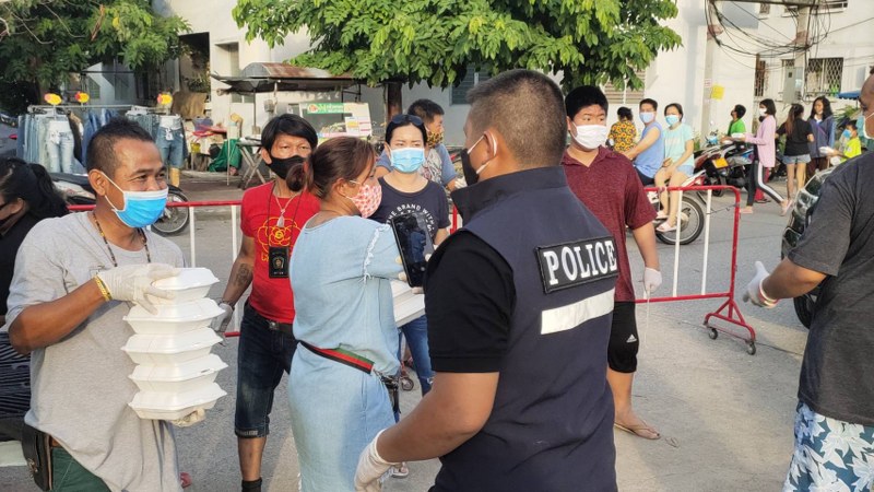 ในวันนี้ มีผู้ที่ร่วมแจก อาทิ นายสด นะวะสด ประธานนิติ 5 เอื้ออาทรนาจอมเทียน, นางสาว กนกพร ณ. หนองคายประธานนิติ 3 เอื้ออาทรนาจอมเทียน, ดาบตำรวจสมพร ขันทอง หัวหน้าป้อมบ้านอำเภอ และเจ้าหน้าที่ อาสาตำรวจ สภ.นาจอมเทียนพร้อมจิตอาสา โดยการแจกข้าวกล่องในครั้งนี้จะแจกแก่ผู้มีผลกระทบในการระบาดของเชื้อไวรัส 19 มารอรับ กันเป็นจำนวนมาก เป็นแถวยาวโดยมีเจ้าหน้าที่ อาสาตำรวจ สภ.นาจอมเทียน จัดแถวระยะห่างและและมีการคัดกรอง วัดไข้และฉีดเจลล้างมือก่อนรับของ