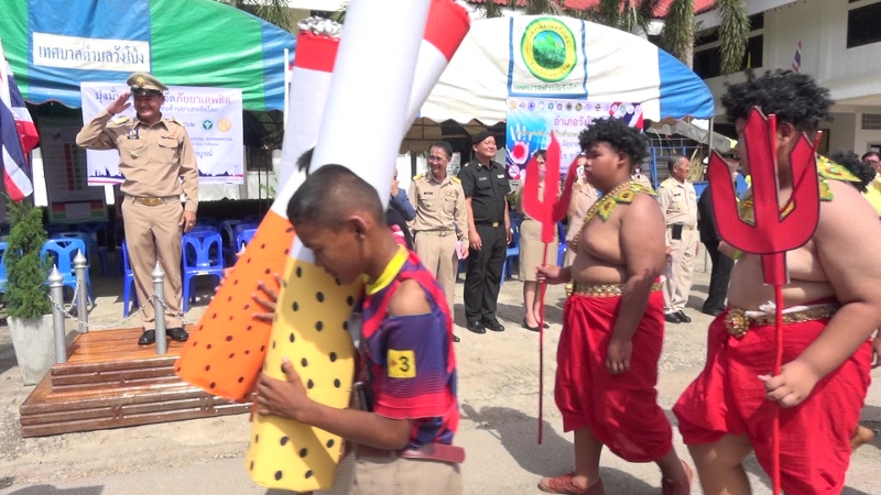 ซึ่งการจัดกิจกรรมในวันนี้ ประกอบด้วย การจัดแสดงนิทรรศการปัญหายาเสพติด โดยนายอำเภอวังโป่ง ได้อ่านสารเนื่องในวันต่อต้านยาเสพติดโลก และนำพลังมวลชนกล่าวคำประกาศเจตนารมณ์ต่อต้านยาเสพติด พร้อมปล่อยแถวระดมกวาดล้างยาเสพติด การจัดระเบียบสังคม และเดินรณรงค์ประชาสัมพันธ์ และการเผยแพร่ผ่านสื่อมวลชนทุกประเภท เพื่อปลุกกระแสให้ประชาชนเข้ามามีส่วนร่วมแสดงพลังต่อต้านยาเสพติด ประชาสัมพันธ์ในสถานศึกษา หมู่บ้าน/ชุมชน และสถานประกอบการต่าง ๆ โดยมี น้องๆนักเรียน นักศึกษา เข้าร่วมแสดงกิจกรรมดังกล่าว ช่วยสร้างสีสันได้เป็นอย่างดี