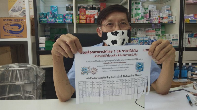 นายสว่าง สิริพิริยกุล อายุ 66 ปี เจ้าของร้าน เปิดเผยว่า เภสัชกร อรรถวุฒิ สิริพิริยกุล อายุ 28 ปี ลูกชายตน มาปรึกษาตนว่ารู้สึกเห็นใจผู้ที่ได้รับผลกระทบจากการแพร่ระบาดของไวรัสโควิด-19 ทำให้ชาวบ้านเดือดร้อน และหลายคนตกงาน ไม่มีรายได้ ลูกชายอยากให้การช่วยเหลือ อีกทั้งได้เห็นคอมเม้นท์ในเพจ Drama-addict ที่โพสต์ไว้ถึงเทคนิควิธีให้การช่วยเหลือผู้เดือดร้อน ลดขั้นตอนปลอดภัยต่อการติดเชื้อและยังเว้นระยะห่างทางสังคมได้ โดยทำเป็นคูปองไปติดที่ร้านค้าที่คนบริจาคจ่ายเงินไว้ที่ร้านค้าล่วงหน้า ตนและลูกชายจึงร่วมกับร้านขายอาหารจำนวน 18 ร้าน ในเขตเทศบาลตำบลหาดเสี้ยว จัดโครงการนี้ขึ้นมาเพื่อแบ่งเบาความลำบากของผู้คน โดยจ่ายเงินค่าอาหารให้ร้านอาหารไปก่อน มากกว่า 600 บาทต่อร้าน ใครไม่มีเงินสามารถมารับประทานอาหารในร้านที่มีป้ายนี้ได้เลยฟรีๆ และเปิดโอกาสให้ผู้ใจบุญร่วมกันแบ่งปันด้วยการซื้อคูปองให้ผู้เดือดร้อนได้ด้วย ซึ่งหากมีร้านอาหารเข้าร่วมโครงการนี้เพิ่มก็ยินดี โดยจะจัดอย่างนี้ไปจนกว่าสถานการณ์ โควิด – 19 จะดีขึ้น นายสว่าง กล่าวทิ้งท้ายว่า อยากให้คนไทยมีความรักมีความสามัคคีกันร่วมใจร่วมแรงกันฝ่าฟัน ต่อสู้กับโรคโควิด-19 ไปด้วยกัน