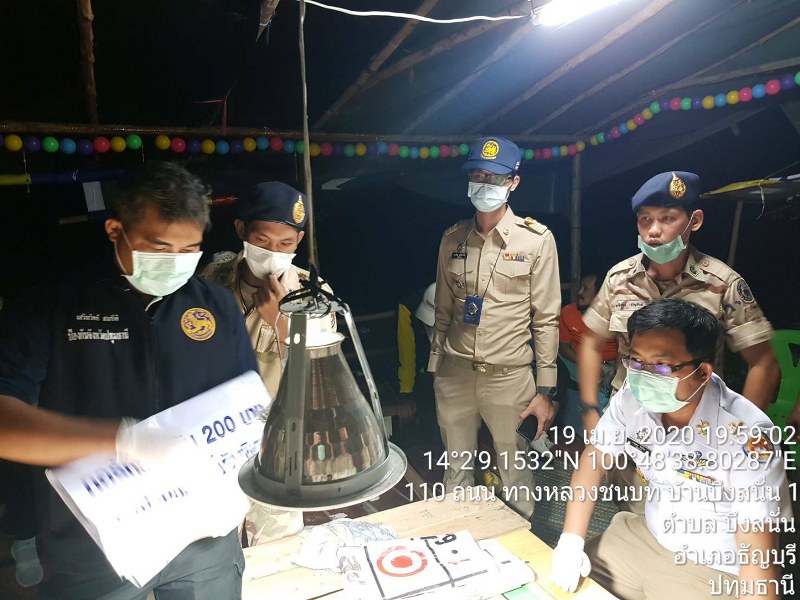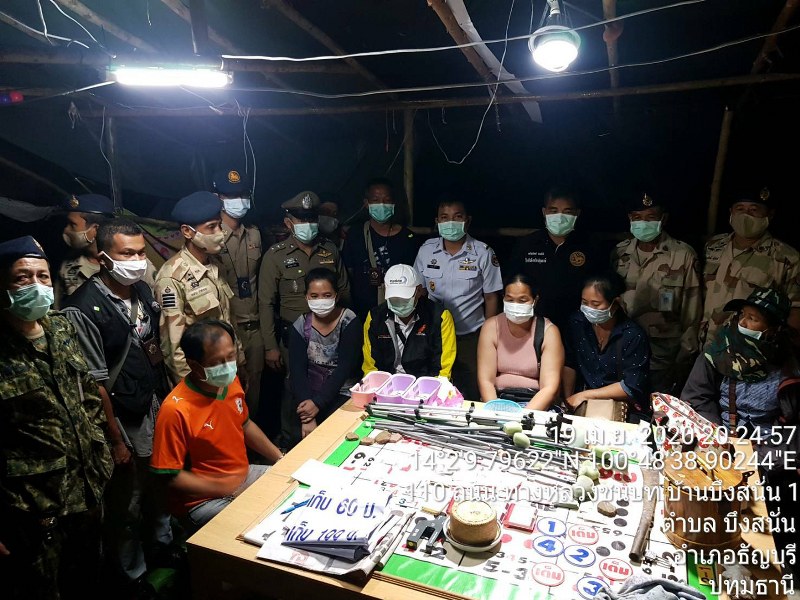 เจ้าหน้าที่ฝ่ายปกครองจังหวัดปทุมธานีได้รับแจ้งจากสายลับหวังสินบนนำจับ ว่ามีการลักลอบเล่นการพนันไฮโล บริเวณป่าสน ทางหลวงชนบท บ้านบึงสนั่น 1 (ซอยโรงงานคอนกรีตซีแพค คลอง11) หมู่ที่ 1 ตำบลบึงสนั่น อำเภอธัญบุรี จังหวัดปทุมธานี