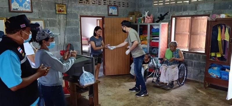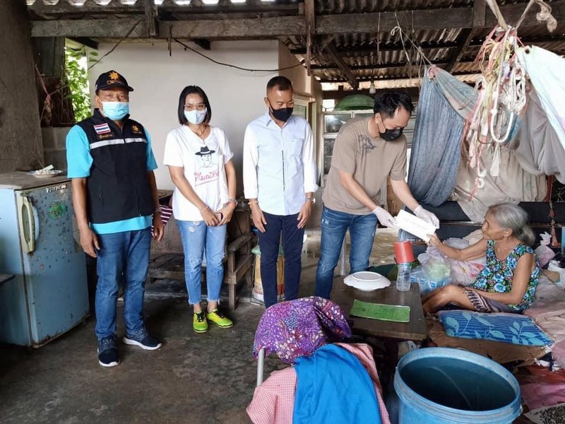 (20 เม ย 63) เวลา 08.00 น. น่าสงสารมาก แต่บางท่านกำลังใจดีมากๆ ผมยังแซวเลยว่าไม่เหมือนคนป่วยเลย(ทั้งๆที่มีถุงหน้าท้องติดอยู่) บางท่านเดินไม่ได้ มีเพียงหลานตัวเล็กๆอยู่เป็นเพื่อน น้องน่ารักมาก ให้ตังค์ไปซื้อขนม 20 บาท เอาไปให้คุณยายก่อนเลย มีถ่ายรูปทำท่าเลียนแบบผมด้วย มีบ้านนึงคุณยายเดินไม่ได้ แต่รู้จักผมว่า คนเคยพูดถึง ส.ส.ต้น ไม่ได้ถามท่านครับว่าพูดว่าอะไร แต่น่าจะดีนะครับ เห็นแกยิ้มและดีใจที่ได้เจอ หลังจากนั้นได้ไปดูการลงทะเบียนรับสิทธิเงินช่วยเหลือจาก อบต.บ่อทอง ได้คุยกับพี่น้องฯนิดนึงครับ เจอหมอเปิ้ลและทีมงาน มาทำงานอยู่ หลังจากได้เคยฝากเจลฯ มาให้ วันนี้เลยได้แบ่ง Face shield และถุงซิปล็อค กับเจลฯให้อีก อยากให้กำลังใจทุกๆคนในภาวะเช่นนี้ น่าชื่นชมคนทำดีทุกๆคน ไม่ว่าเป็นใคร เครือข่าย ส.ส.ต้น ที่ประสานงานวันนี้คือ เจ้พีท คุณนิติกาญจน์ พีท นิติกาญจน์ ทัดประดิษฐ์ฐิติ ผู้ใหญ่น้อย จิรโรจน์ ทัดประดิษฐ์ฐิติ ร่วมกับ พ.ต.อ.กรวัฒน์ หันประดิษฐ์ รอง ผบก.ภ.จว.ชลบุรี นายกศรรณพัฒน์ พรงาม อสม.บ่อทอง ผู้นำฯในระดับต่างๆ และตัวแทนของคุณตุ๊ก ว่าที่ผู้สมัคร ส.อบจ.บ่อทอง ที่ได้ร่วมมอบนม กับสิ่งของ ฯลฯ