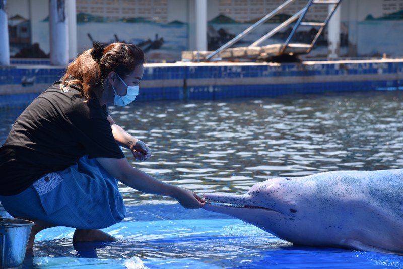 แต่เพื่อให้โลมาอยู่รอดจำเป็นที่จะต้องหารายได้มาช่วยเหลือปลาโลมา โดยการทำอาหารตามสั่งขายเพื่อนำรายได้ส่วนหนึ่งมาจุนเจือเรื่องอาหารให้กับปลาโลมาและสัตว์เลี้ยงอื่นๆเพื่อพยุงให้อยู่รอดต่อไป ส่วนพนักงานช่วงนี้เอาไว้ที่จำเป็นสำหรับเพื่อสัตว์เลี้ยงเท่านั้น ส่วนพนักงานแผนกอื่น นั้นให้พักชั่วคราวไปก่อน แต่ได้ใช้สิทธิการประกันสังคมเพื่อพยุงความอยู่รอด อยากให้รัฐบาลเยียวยาช่วยเหลือผู้ประกอบการเกี่ยวกับระบบการเงินกู้หมุนเวียนธุรกิจให้ให้เร็วยิ่งขึ้นก่อนที่ธุรกิจจะอยู่ไม่ได้และต้องปิดถาวร