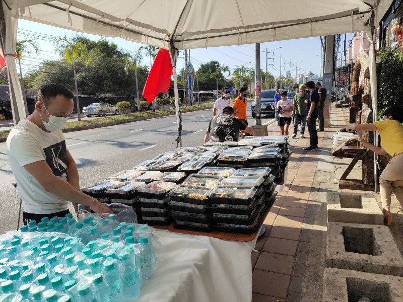 กลุ่มนักธุรกิจชาวจีน ร้านอาหารหม้อไฟหูฉลามลุ่ยเหยียน ใต้ทำข้าวกล่อง น้ำดื่ม จำนวน 300 ชุด แจกประชาชนทั้งชาวไทยและชาวต่างชาติ ชาโตเดลพลาซ่า ถ.ทัพพระยา ก่อนถึงแยกถนนเทพประสิทธิ์