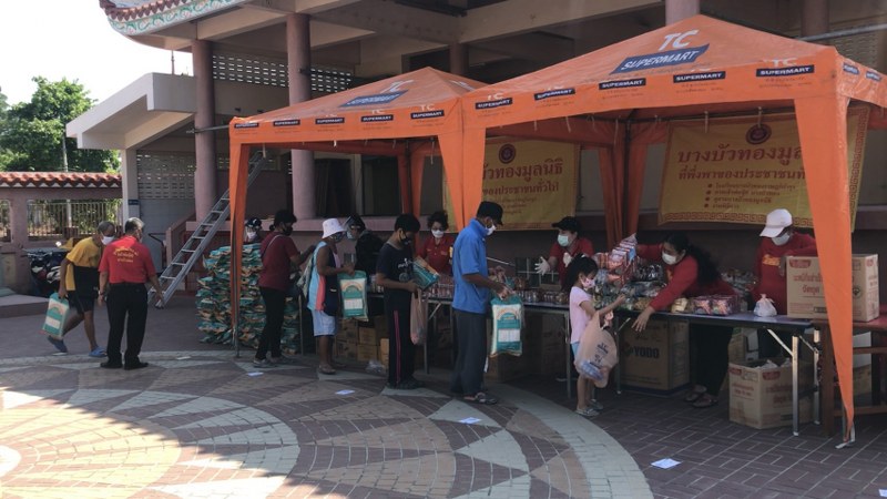 ทางด้านนายพรอนันต์ สุขประเสริฐชัย ประธานบางบัวทองมูลนิธิ กล่าวว่า ทางบางบัวทองมูลนิธิได้เปิดศูนย์รับบริจาคข้าวสาร อาหารแห้ง ตั้งเเต่วันที่ 9-17 เม.ย.ที่ผ่านมา ซึ่งได้รับความร่วมมือจากชมรมตระกูลแซ่ต่างๆ เป็นอย่างดี จึงนำรายได้ทั้งหมดมาจัดซื้อข้าวสาร อาหารแห้ง ขนม เครื่องอุปโภค บริโภค เพื่อเยียวยาและบรรเทาความเดือดร้อนให้กับพี่น้องประชาชนที่ได้รับผลกระทบจากสถานการณ์การเเพร่ระบาดของเชื้อไวรัสโควิด-19 โดยวันนี้ทางบางบัวทองมูลนิธิได้นำข้าวสาร อาหารแห้ง มาบริจาคให้กับพี่น้องประชาชนในพื้นที่ กว่า 1,000 ชุด