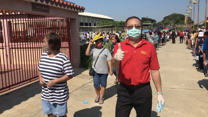 โดยมีชาวบ้านมาเข้าเเถวรอรับของบริจาคกันเป็นจำนวนมาก โดยแต่ละจุด เจ้าหน้าที่จะทำสัญลักษณ์ให้ประชาชนที่มารับสิ่งของยืนห่างกันประมาณ 1.5 เมตร และให้ทุกคนสวมใส่เเมสก์ก่อนออกจากบ้านทุกครั้ง เพื่อป้องกันการแพร่กระจายของเชื้อไวรัสโควิด -19 และอยากจะฝากถึงพี่น้องประชาชนทุกท่าน ให้ปฎิบัติตามคำสั่งของหน่วยงานภาครัฐอย่างเคร่งครัด ตอนนี้ทุกคนต่างก็ได้รับผลกระทบจากไวรัสโควิด-19 กันเป็นจำนวนมาก ทางบางบัวทองมูลนิธิ ขอเป็นอีก 1 กำลังใจให้เจ้าหน้าที่นาย ทุกภาคส่วน เเพทย์ พยาบาล บุคคลากรทางสาธารณสุข เเละพี่น้องประชาชนทุกครอบครัวก้าวข้ามฝ่าวิกฤติครั้งนี้ไปได้อย่างปลอดภัย