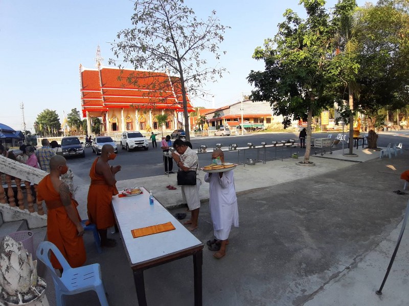 วัดในพื้นที่ อ.สัตหีบ จ.ชลบุรี ปรับตัวสู้โควิด-19 โดยให้ย้ายการทำบุญตักบาตรจากบนศาลาการเปรียญลงมาทำบุญตักบาตรลานบุญด้านล่าง โดยให้ญาติโยมอุบาสกอุบาสิกาที่จะร่วมทำบุญตักบาตรได้ยืนห่างกันในระยะ 1-2 เมตร ล้างมือด้วยเจลแอลกอฮอล์ฆ่าเชื้อ ก่อนร่วมในพิธี เพื่อปรับตัวสู้โควิด 19