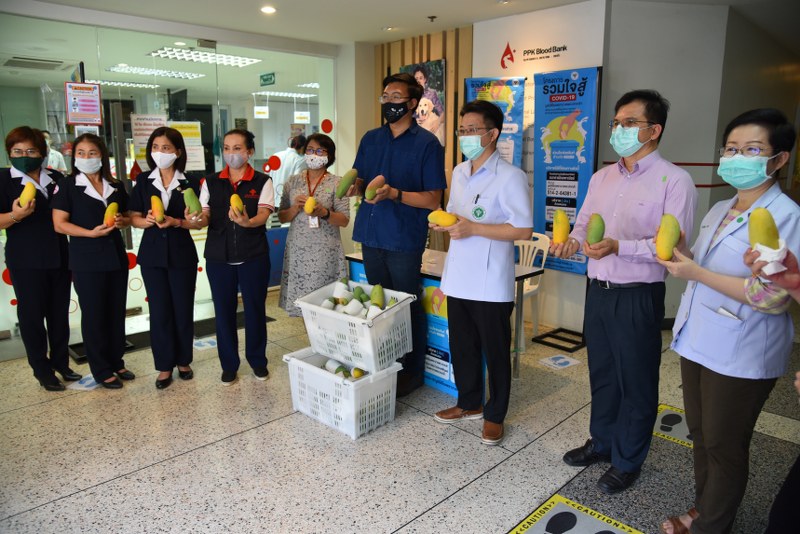 โอกาสนี้นายชรัตน์ เนรัญชร ที่ปรึกษารัฐมนตรีช่วยว่าการกระทรวงสาธารณสุข ได้นำมะม่วงพันธุ์มหาชนกจำนวน 10 ตะกร้า น้ำหนักรวมกว่า 200 กิโลกรัม ที่ปลูกไว้ในสวนอำเภอสอยดาวมามอบให้กำลังใจแพทย์ พยาบาล บุคลากรทางการแพทย์ พร้อมทั้งเปิดเผยว่าปีนี้ มะม่วงที่ปลูกไว้ในสวน เนรัญชร อำเภอสอยดาวกว่า 30 ไร่ จะไม่จำหน่ายแต่จะเก็บมามอบให้แพทย์ พยาบาล บุคลากรทางการแพทย์ เป็นกำลังใจแทนคำขอบคุณ ที่เสียสละต่อสู้ คัดกรอง ป้องกันแก้ไขโรคไวรัสโคโรนา 2019 ป้องกันการแพร่ระบาดในจังหวัดจันทบุรี เดียวกันภาคเอกชนได้มอบชุดเจ้าหน้าที่ห้องผ่าตัด และห้องปฏิบัติงานชุดผู้ป่วยหนักแก่เจ้าหน้าที่ที่ปฏิบัติงานลดความเสี่ยงจำนวน 150 ชุด