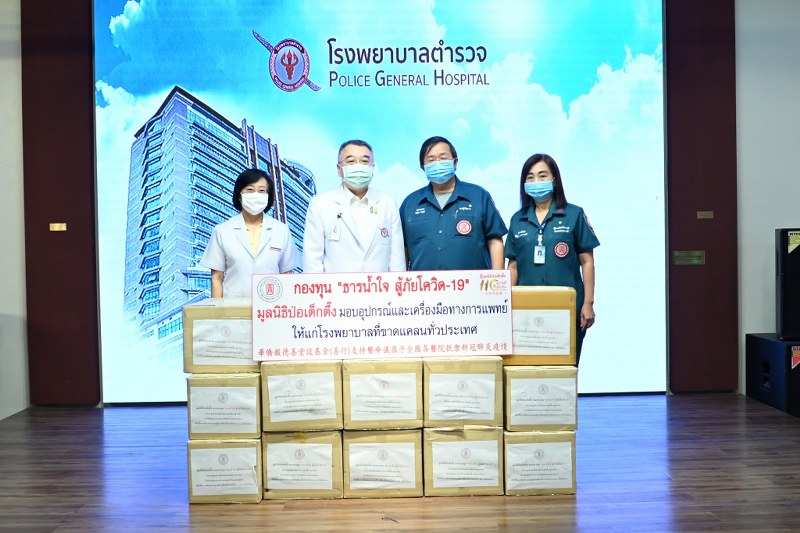 วันที่ 20 เมษายน 2563 เวลา 11.00 น.: มูลนิธิป่อเต็กตึ๊ง นำโดย นายวันชิด ศิรสีห์ รองผู้จัดการมูลนิธิป่อเต็กตึ๊ง พร้อมด้วยนางศิริพร กระจ่างหล้า รักษาการหัวหน้าแผนกสังคมสงเคราะห์ มอบชุดอุปกรณ์ป้องกันความปลอดภัย (PPE : Personal Protective Equipment) จำนวน 250 ชุด ให้แก่บุคลากรทางการแพทย์ของโรงพยาบาลตำรวจ โดยมีพลตำรวจตรี ธนา ธุระเจน รองนายแพทย์ใหญ่ (สบ.7) โรงพยาบาลตำรวจ เป็นผู้รับมอบ ณ อาคารมหาภูมิพลราชานุสรณ์ 88 พรรษา ชั้น 2 โรงพยาบาลตำรวจ กรุงเทพฯ