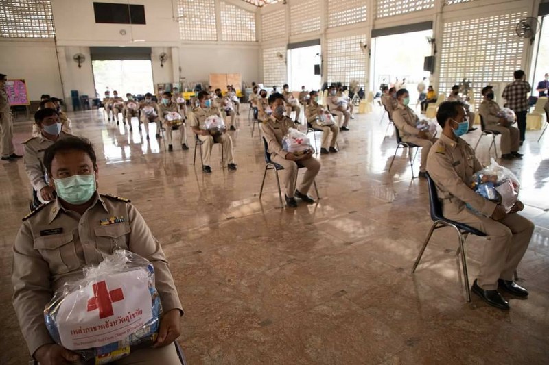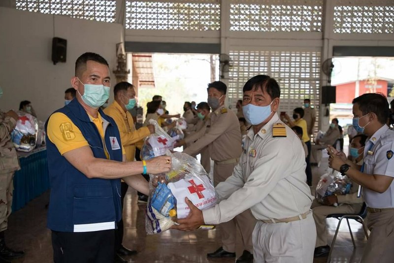 วันนี้ (21 เม.ย.63) ตั้งแต่เวลา 10.00 น.นายไมตรี ไตรติลานันท์ ผู้ว่าราชการจังหวัดสุโขทัย พร้อมพร้อมด้วยสมาชิกเหล่ากาชาดจังหวัดสุโขทัยและหน่วยงานที่เกี่ยวข้อง ลงพื้นที่อำเภอกงไกรลาศ อำเภอคีรีมาศ และอำเภอบ้านด่านลานหอยเพื่อตรวจเยี่ยมให้กำลังใจเจ้าหน้าที่ผู้ปฏิบัติงานที่ด่านคัดกรองโควิด 19 และมอบถุงยังชีพของเหล่ากาชาดจังหวัดสุโขทัย ซึ่งประกอบด้วยข้าวสาร บะหมี่กึ่งสำเร็จรูป ไข่ไก่ น้ำมันพืช น้ำปลา หน้ากากผ้าและเจลล้างมือให้กับกำนันผู้ใหญ่บ้าน อสม. ผู้นำชุมชน และตัวแทนประชาชนที่เดือดร้อนที่มีฐานะยากจนและได้รับผลกระทบจากการแพร่ระบาดของเชื้อโควิด 19 โดยได้กล่าวกับพี่น้องประชาชนว่าขอให้อดทนกับเหตุการณ์นี้ เชื่อว่าอีกไม่นานสถานการณ์ภาพรวมของประเทศจะดีขึ้นเรื่อยๆ มาตรการต่างๆ รัฐบาลคงมีการพิจารณาผ่อนปรนบ้าง ส่วนการช่วยเหลือเยียวยาเบื้องต้นทางจังหวัดจะได้ออกสำรวจและลงไปช่วยเหลือประชาชนให้ทั่วถึงต่อไป