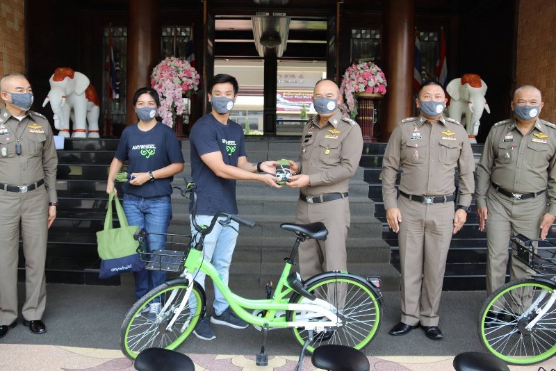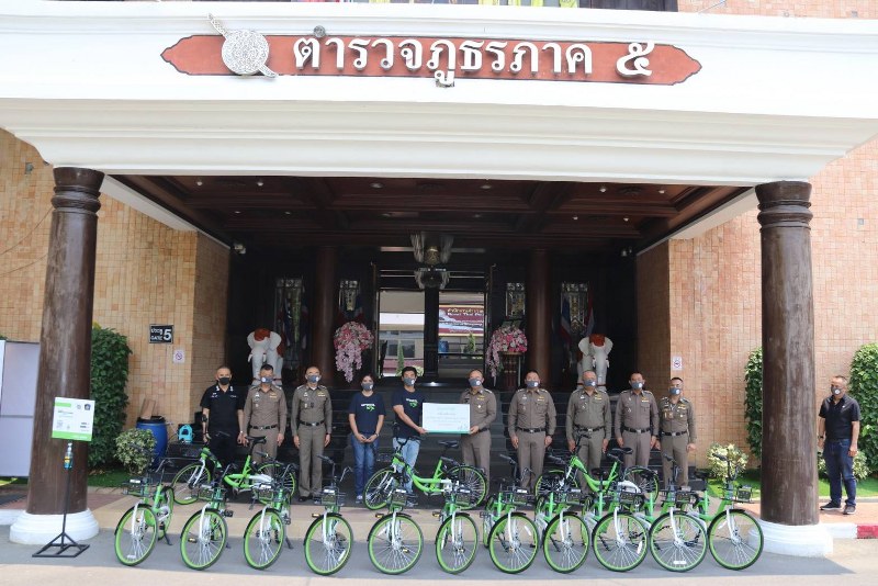 ตำรวจภูธรภาค ๕ ร่วมกับ จักรยานสีเขียว Anywheel สนับสนุนโครงการ”ตำรวจภูธรภาค ๕ ประชาปลอดภัยปั่นต้านภัยโควิด -๑๙ ” ให้ข้าราชการตำรวจในพื้นที่ อ.เมืองเชียงใหม่ ใช้จักรยานเป็นอีกหนึ่งช่องทางในการออกตรวจตราป้องกันการแพร่ระบาดโควิด-๑๙