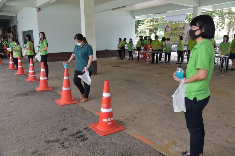 โดยเจ้าที่เทศบาลได้ช่วยกันจัดแถวของผู้เข้ารับอาหาร เว้นระยะห่าง Social distancing ป้องกันโรคไวรัสโคโรนา 2019 อย่างเป็นระเบียบ เรียบร้อย มีพนักงานให้บริการเจลแอลกอฮอล์ล้างมือทุกคนที่เข้ารับอาหาร เป็นการทำความดี แบ่งเบาภาระค่าใช้จ่ายของผู้มีรายได้น้อย และ ผู้ได้รับผลกระทบจากสถานการณ์ดังกล่าว โดยข้าวกล่องและน้ำดื่มเป็นเงินส่วนตัวที่นายกเทศมนตรีเทศบาลเมืองจันทบุรีนำมาช่วยเหลือบรรเทาความเดือดร้อนประชาชน มีข้าวกล่องและน้ำดื่มที่แจกฟรีในรอบนี้ 1,000 ชุด