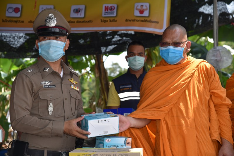 มูลนิธิพระพุทธบาทพลวง และ ประชาชน ภาคเอกชน มอบสิ่งของและให้กำลังใจเจ้าหน้าที่ประจำด่านตรวจคัดกรองป้องกันโควิด-19 ในจังหวัดจันทบุรีแทนคำขอบคุณที่เสียสละเวลามาเฝ้าระวังป้องกันโรคไวรัสโคโรนา 2019 ทั้ง 3 จุดตรวจระหว่างเมือง