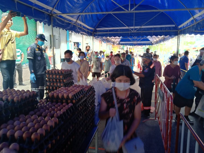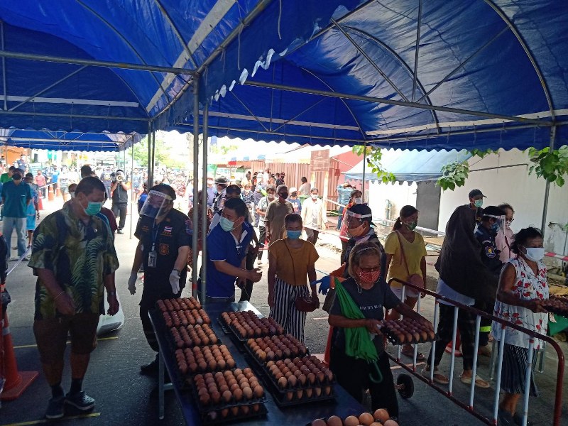 สมาคมผู้นิยมพระเครื่องพระบูชาไทย จังหวัดชลบุรี แจกไข่ไก่ 1 หมื่นฟอง ข้าวสารอาหารแห้ง กว่า 500 ชุด นายอำเภอศรีราชา นำกำลังเจ้าหน้าที่คุมเข้ม ป้องการการแพร่ระบาดเชื้อไวรัส โควิด 19