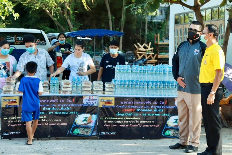 คุณโจ้ นายจตุพร จตุทอง ในนามร้านปายละเมอและห้างทองปัญญาสาขาตลาดบางเสร่ และแม่หมวย นางสมทรง ศิริลือฉาย และคุณหมี สุปรีชา ปั้นประ สงค์ ในนามร้านทองปัญญาตลาดศรีประพัฒน์ กม.10 สัตหีบ ที่ได้ร่วมกันแจกข้าวกล่องในวันนี้ ได้เปิดเผยว่า ปัจจุบันคนไทยกำลังประสบปัญหาโรคเชื้อไวรัส โควิด -19 แพร่ระบาดอย่างหนักถึงขั้นปิดห้างร้าน ปิดกิจการกันไปชั่วคราว ทำให้มีคนตกงานรายได้ลดลง ทางเราขอเป็นกำลังใจและร่วมปันน้ำใจ ให้ประชาชนทุกคนผ่านวิกฤติโรคร้ายนี้ไปด้วยกันให้ได้ โดยจะร่วมกันแจกข้าวกล่องและน้ำดื่มทุกวัน ณ บริเวณหน้าร้านปายละเมอ ถนนบ้านนาสัตหีบ ไปจนถึง วันที่ 29 เม.ย.63 นี้ รวม 10 วัน