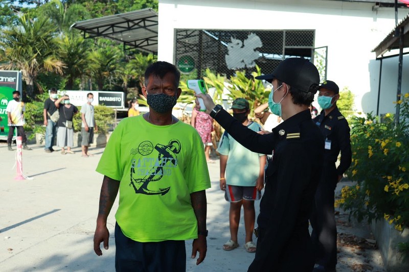 เทศบาลเมืองสัตหีบ อำนวยความสะดวก พี่น้องประชาชน ในการรับข้าวกล่องจากการปันน้ำใจของกิจการห้างร้าน สู้วิกฤติ โควิด-19 ให้เป็นไปตามมาตรการป้องกันโรคไวรัสฯ ประชาชนต้องใส่แมส วัดไข้ ใช้เจลล้างมือ ก่อนรับข้าวกล่องทุกครั้ง