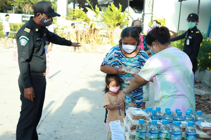 พร้อมทั้งขอขอบคุณ นายอนุชา อินทศร นายอำเภอสัตหีบ เทศกิจเทศบาลเมืองสัตหีบ สถานีตำรวจภูธรอำเภอสัตหีบ และผู้ใหญ่บอม หมู่ 6 สัตหีบ ที่มาจัดระเบียบและอำนวยความสะดวกให้พี่น้องประชาชนที่เดือดร้อนจาก วิกฤติโควิด-19 ให้ได้รับข้าวกล่องแม่สมทรง จากการปันนำ้ใจ แจกฟรี ของภาคเอกชน เป็นไปตามมาตรการการควบคุมการแพร่ระบาดของโรคไวรัสฯ ในโอกาสเดียวกันนี้ด้วย