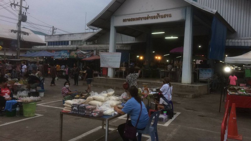 ตลาดเช้าเทศบาลบ้านสวน จังหวัดสุโขทัย ที่ใช้มาตรการเว้นระยะห่างทางสังคม หรือ Social distancing อย่างเคร่งครัด โดยตั้งร้านขายของเว้นห่างกันประมาณ 1 เมตร เพื่อป้องกันเชื้อไวรัสโควิด-19 ชาวเน็ตชื่นชมควรเอาเป็นแบบอย่างที่ดี