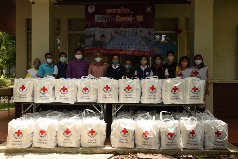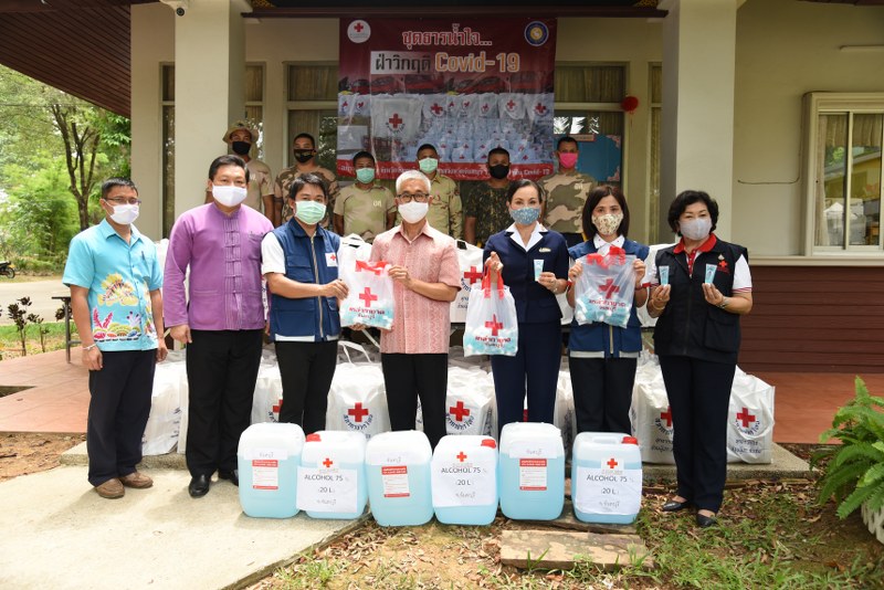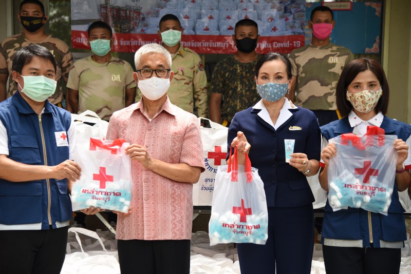 จันทบุรี-สำนักงานเหล่ากาชาดจังหวัดจันทบุรีมอบชุดธารน้ำใจผ่านอำเภอก่อนนำไปมอบให้ประชาชนที่อาศัยอยู่ในหมู่บ้านที่กักตัวเองหลังจากกลับจากต่างจังหวัดและได้รับผลกระทบจากสถานการณ์โควิด-19