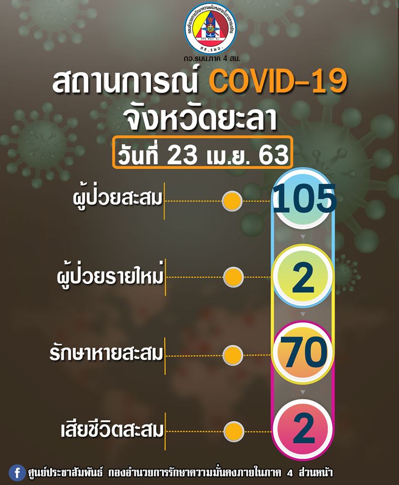 อัปเดตการยืนยันยอดผู้ป่วย COVID – 19 ในพื้นที่จังหวัดยะลา ประจำวันที่ 23 เมษายน 2563