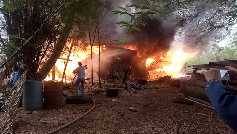 ที่เกิดเหตุเป็นบ้านไม้ชั้นเดียว ยกสูง มีห้องแถวอยู่ด้านหลังสำหรับเก็บเครื่องมือ เมล็ดพันธุ์พืช ซึ่งสร้างด้วยไม้ อีกทั้งยังมีถังน้ำมันเพื่อใช้ในการเติมอุปกรณ์การเกษตรอยู่จำนวนมาก ซึ่งเป็นเชื้อเพลิงอย่างดี อีกทั้งยังมีกระแสลมกรรโชกมาเป็นระยะ เจ้าหน้าที่ได้เร่งทำการสกัดเพลิง ให้อยู่ในวงจำกัด ได้ในเวลาต่อมา แต่ก็ทำให้บ้านเดี่ยว รวมถึงอาคารเก็บของ รถยนต์กระบะจำนวน 2 คัน เทรลเลอร์ลาก รถจักรยานยนต์จำนวน 4 คัน เครื่องปั่นไฟ เครื่องสูบน้ำ และทรัพย์สินภายในบ้านไหม้วอดจมอยู่ในกองเพลิง ไม่สามามรถนำออกมาได้แม้แต่ชิ้นเดียว