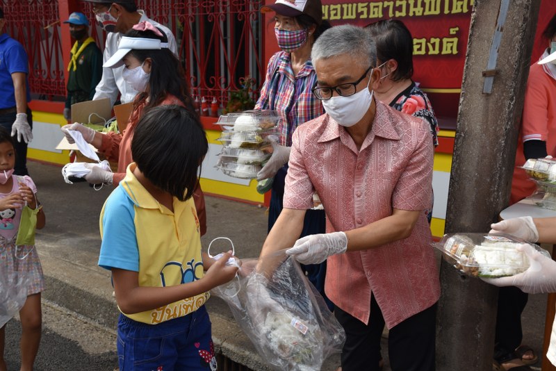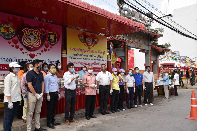โดยครั้งนี้ นายวิทูรัช ศรีนาม ผู้ว่าราชการจังหวัดจันทบุรี ร่วมกับ นายเซ้ง ปิยะธรรมวุฒิกุล นายกสมาคมตังเอ็งสว่างกตัญญูธรรมสถานจังหวัดจันทบุรี รองเสนาธิการ มทบ.19 นายอำเภอเมืองและผู้นำองค์กรภาคเอกชนร่วมแจกข้างกล่องแก่ประชาชน ทั้งนี้สมาคมสว่างกตัญญูธรรมสถานจังหวัดจันทบุรีจะแจกข้าวกล่องที่มีจิตอาสาสมาชิกกู้ภัยสว่างกตัญญูร่วมกันปรุงอาหารแก่ประชาชนผู้ได้รับผลกระทบทุกวันเวลา 16.00 น.วันละ 1,200 กล่องไปจนถึงวันที่ 30 เมษายน
