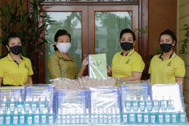 ประกอบด้วย หน้ากากป้องกันละอองเชื้อโรค(Face shield) 300 ชิ้น, หน้ากากอนามัยแบบผ้า 400 ชิ้น, และน้ำยาแอลกอฮอล์สำหรับทำความสะอาดมือขนาด 100 ซีซี 200 ขวด, และขนาด 250 ซีซี. 50 ขวด, เพื่อสนับสนุนกิจกรรมที่เป็นสาธารณะประโยชน์ของสมาคมภริยาทหารเรือในการต่อสู้กับวิกฤติไวรัส COVID-19 ณ สมาคมภริยาทหารเรือ เขตพระนคร กรุงเทพมหานคร