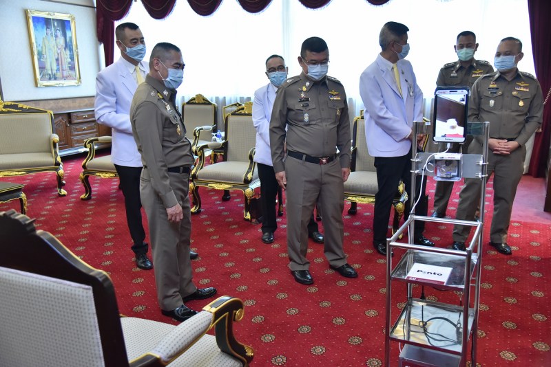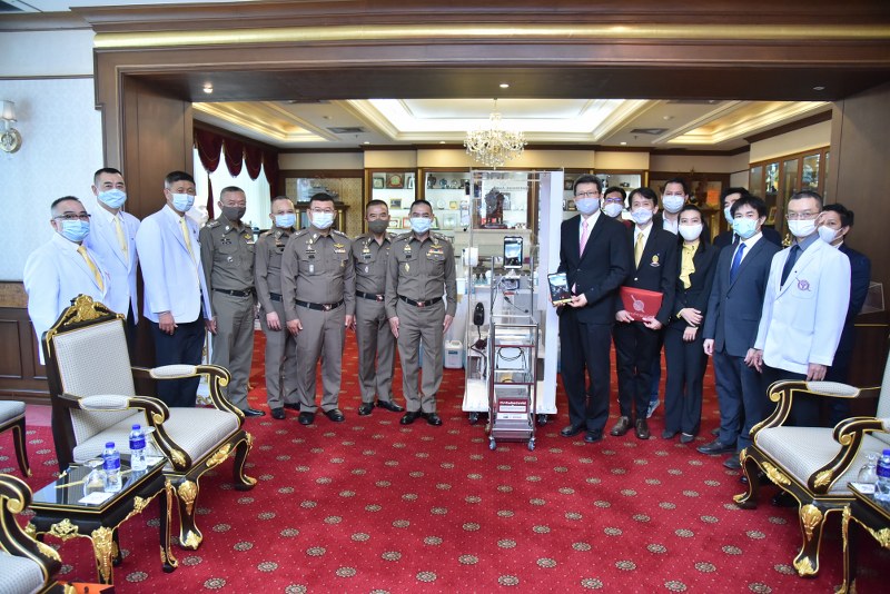 -ศาสตราจารย์ ดร.สุพจน์ เตชวรสินสกุล คณบดี คณะวิศวกรรมศาสตร์ จุฬาลงกรณ์มหาวิทยาลัย พร้อมคณะ มีความประสงค์มอบรถกองหนุนตัวตันแบบให้กับบุคคลากรทางการแพทย์ รพ.ตร. เพื่อให้ดูแลผู้ป่วยติดเชื้อไวรัสโควิด-19