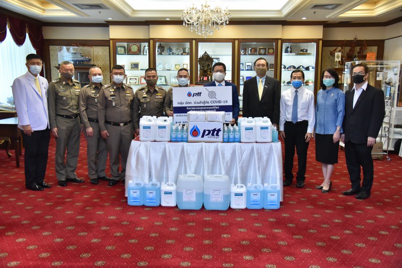 วันที่ 23 เมษายน 2563 เวลา 11.00 น. ณ ห้องพรหมนอก ชั้น 2 อาคาร 1 ตร./ พล.ต.อ.จักรทิพย์ ชัยจินดา ผบ.ตร. พร้อมด้วย พล.ต.อ.มนู เมฆหมอก รอง ผบ.ตร., พล.ต.ท.ดำรงศักดิ์ กิตติประภัสร์, พล.ต.ท.ปิยะ อุทาโย, พล.ต.ท.เพิ่มพูน ชิดชอบ ผู้ช่วย ผบ.ตร., พล.ต.ท.วิฑูรย์ นิติวรางกูร พตร. และ พล.ต.ต.ญาณพงศ์ โสมาภา ผบก.สท.รับมอบแอลกอฮอลล์เจลล้างมือ จาก คุณชาญศิลป์ ตรีนุชกร ประธานเจ้าหน้าที่บริหารและกรรมการผู้จัดการใหญ่ บริษัท ปตท. จำกัด (มหาชน) และคณะ จำนวน 2,863 ลิตร เพื่อสนับสนุนให้กับสำนักงานตำรวจแห่งชาติ