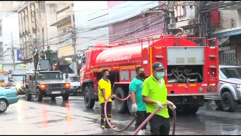 นอกจากนี้ทางกองพันปฏิบัติการจิตวิทยา หน่วยบัญชาการสงครามพิเศษ ยังได้นำรถประชา สัมพันธ์เคลื่อนที่จำนวน 2 คัน ออกประชาสัมพันธ์ในการป้องกันตนเองจากไวรัสโควิด-19 ซึ่งการดำเนินการในครั้งนี้จะไม่ให้กระทบกับการดำเนินชีวิตของประชาชนในช่วงวันหยุด โดยรถบรรทุกน้ำได้พ่นน้ำยาฆ่าเชื้อ ที่ฉีดพ่นน้ำยาลงบนพื้นถนน ตามร้านค้า แผงลอยต่างๆ นั้น เจ้าหน้าที่กองสาธารณสุขได้เข้าดำเนินการกวาดสะอาดเรียบร้อยแล้ว จากนั้นเว้นระยะ 15 นาที จึงทำความสะอาดซ้ำอีกครั้งด้วยรถฉีดน้ำ ชะล้างให้สะอาดที่สุด ถึงแม้ว่าจะต้องทำความสะอาดทุกวัน ก็ต้องทำเพื่อสร้างความมั่นใจ สร้างความเชื่อมั่นให้กับพี่น้องประชาชนชาวลพบุรี ถึงมาตรการเข้มของ และการปฏิบัติการเชิงรุกขอกงเจ้าหน้าที่ทุกฝ่าย ที่ตั้งใจให้เชื้อไวรัสโคโรน่า 2019 หรือโควิด-19 หมดเชื้อแบบสิ้นซาก