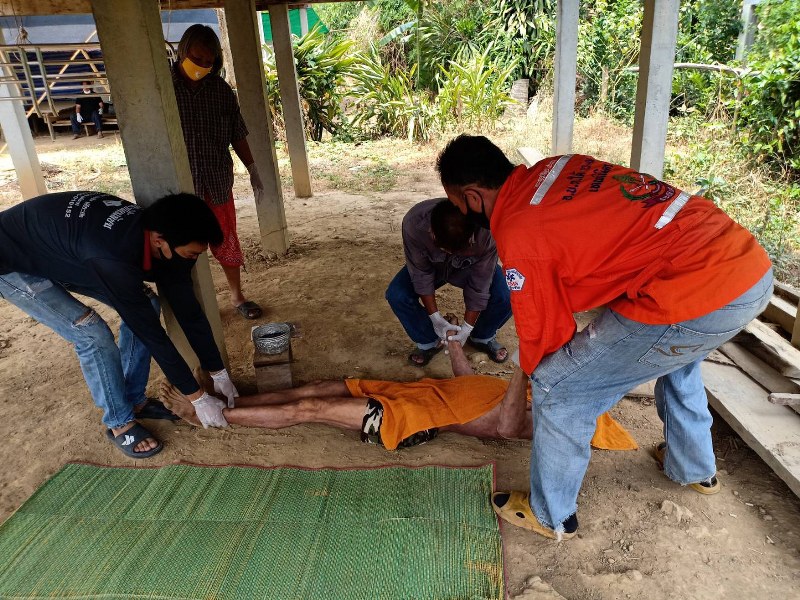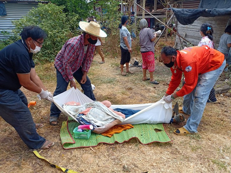 เวลา 09.00 น. วันที่ 25 เม.ย. 2563 พ.ต.ท.ธงชัย เจิมขุนทด สว.(สอบสวน) สภ.บ้านแก่ง อ.ศรีสัชนาลัย จ.สุโขทัย รับแจ้งมีผู้เสียชีวิต ที่บ้านไม่มีเลขที่ หมู่ 4 ตำบลบ้านแก่ง อำเภอศรีสัชนาลัย จึงรายงานให้ผู้บังคับบัญชาทราบแล้วรุดไปตรวจสอบพร้อมแพทย์เวรร.พ. ศรีสัชนาลัย และอาสาสมัครกู้ภัยเทพนิมิตรจุดสารจิตร ที่เกิดเหตุพบศพชายนอนเสียชีวิตในเปลใต้ถุนบ้านไม้ยกพื้นสูงยังสร้างไม่เสร็จในสภาพมือเท้าเกร็ง ไม่มีบาดแผลจากการถูกทำร้าย