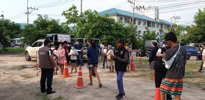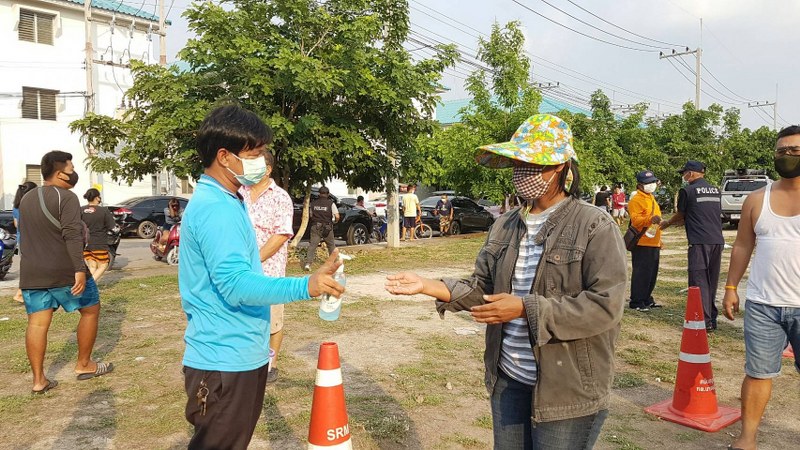 ในการแจกในครั้งนี้ ร.ต.อ.ธนัญชัย วงศ์จำปา รอง สวป.สภ. นาจอม, นายสด นะวะสด ประธานนิติ 5 เอื้ออาทรนาจอมเทียน, นางสาว กนกพร ณ. หนองคายประธานนิติ 3 เอื้ออาทรนาจอมเทียน และนายชลวรัท กียะสูตร นายกเทศมนตรีตำบลเขาชีจรรย์ ได้มอบหมายให้ พ.จ.อ.กฤติยา จิตต์ตรง ผู้อำนวยการกองสาธารณสุขและสิ่งแวดล้อม เทศบาลตำบลเขาชีจรรย์นำเจ้าหน้าที่ กองสาธารณะสุขและสิ่งแวดล้อม เทศบาลตำบลเขาชีจรรย์ ร่วมกับเทียน อาสาตำรวจ สภ.นาจอมเทียน พร้อมจิตอาสา มาจัดการคัดกรองตรวจวัดอุณหภูมิร่างกาย ฉีดเจลแอลกอฮอล์ล้างมือ ให้แก่ผู้ทีมารับแจก และจัดให้มีการเว้นระยะห่างทางสังคม เพื่อความปลอดภัยของคณะทำงานและประชาชนผู้มารับแจก