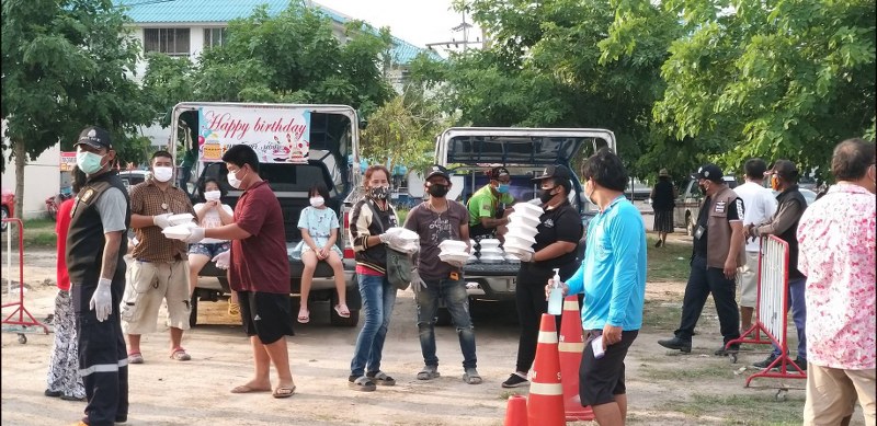 นายบัญชา มุ่งชนะผู้จัดการ การไฟฟ้าส่วนภูมิภาคจอมเทียน แจกข้าวกล่อง ข้าวใบกระเพราไก่ไข่ดาว ในโครงการบ้านเอื้ออาทรนาจอมเทียน จำนวน 450 กล่องเนื่องในโอกาสวันคล้ายวันเกิด