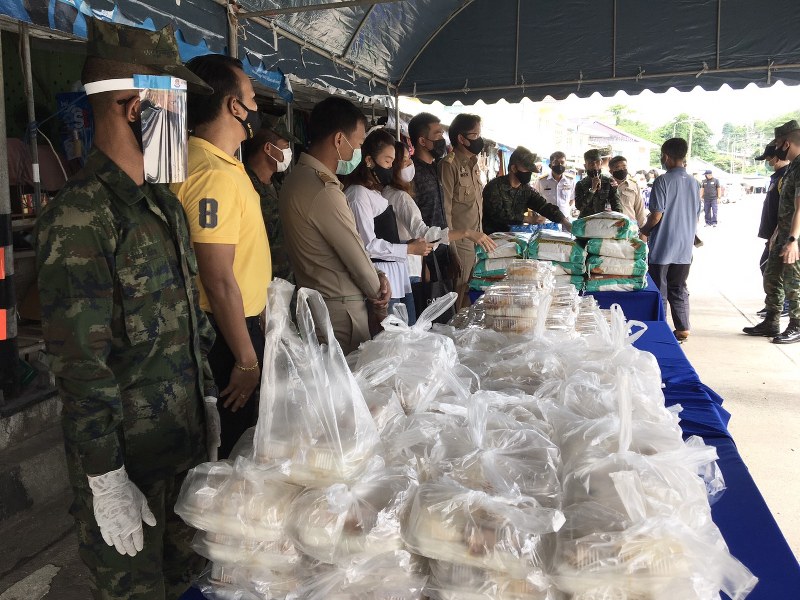 โดยจัดทำอาหารข้าวกล่องไข่เจียวและกับข้าวอื่น ๆ พร้อมน้ำดื่มจากประปาสาขาคลองใหญ่มาร่วมแจกให้ประชาชนตามชายแดน โดยมีหน่วยงานในพื้นที่หลายหน่วยงานเข้าร่วมแจกข้าวกล่อง โดยมีทหาร ตรวจคนเข้าเมืองชายแดนบ้านหาดเล็ก ฝ่ายปกครอง กำนัน ผู้ใหญ่บ้าน และผู้นำชุมชน นำแจกข้าวกล่องให้กับประชาชนในตำบล หมู่บ้าน/ชุมชน ที่ประสบความเดือดร้อนตามชายแดน จากภาวะวิกฤตโควิด -19 เพื่อไม่ให้คนมารวมตัวกันหนาแน่นที่บริเวณแจกข้าวกล่อง พร้อมตรวจวัตอุณหภูมิและล้างมือด้วยเจลก่อนรับข้าวกล่องเพื่อลดการแพร่ระบาดไวรัสโควิด -19 ตามกฎระเบียบอย่างเคร่งครัด ที่มีความพร้อมจัดตั้งโรงทานช่วยเหลือประชาชนพ้นวิกฤตโควิด-19 พร้อมทั้งหน่วยงานในพื้นที่เป็นศูนย์กลางของคนชุมชนคนไทยไม่ทอดทิ้งกันจึงสมควรที่จะให้หน่วยงานในพื้นที่ช่วยเหลือกันและไม่ทอดทิ้งกันและมีศักยภาพเพียงพอที่จะอนุเคราะห์ประชาชนผู้ประสบความยากลำบากดำเนินภารกิจตามบทบาทหน้าที่ เนื่องด้วยสถานการณ์แพร่ระบาดของของไวรัสโควิด-19 ทวีความรุนแรงขึ้นอย่างกว้างขวางส่งผลกระทบต่อสุขภาพอนามัยและการประกอบอาชีพของประชาชนทำให้เกิดความยากลำบากในหมู่ประชาชน