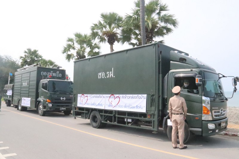 ทหารเรือรวมใจปล่อยคาราวานส่งข้าวกล่องถึงบ้าน ต้านภัยโควิด 19 วันละ 2,500 กล่อง
