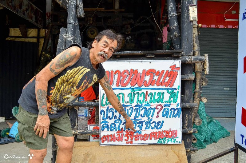อดีตคนทำหนังขึ้นป้าย คนมีรัฐช่วยคนซวยรัฐทิ้ง ถุยชีวิต มีไข่ มีข้าว มีนม มาแลกพระ และได้มีผู้นำไปลงเฟส คณะสงฆ์จังหวัดนครนายกทราบข่าว นำข้าวสารอาหารแห้งมามอบให้ พร้อมสั่งให้ไปรับข้าวกล่องได้วันละ 10 กล่อง ทุกวัน