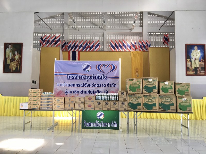 ในการจัดกิจกรรมโครงการถุงกำลังใจจากร้านสหกรณ์จังหวัดตราด จำกัดสู่สมาชิกต้านภัยโควิด-19 ร่วมกับสํานักงานสหกรณ์จังหวัดตราด อีกส่วนหนึ่งเพื่อไปแจกให้กับผู้ป่วยติดเตียง ผู้ป่วยด้อยโอกาส ผู้พิการ และผู้สูงอายุในพื้นที่อําเภอคลองใหญ่และร่วมกันแจกสิ่งของให้กับสมาชิกที่ได้รับผลกระทบโควิดของสหกรณ์จังหวัดตราดได้ทำการลงทะเบียนไว้แล้วนั้นและมีการจัดระยะเว้นห่างให้สมาชิกได้รอคิวเข้ารับของแจกต่างๆดังกล่าวด้วย ซึ่งทางสหกรณ์จังหวัดตราดได้นำข้าวสารมาแจกคนละ 1 ถุง และเจลล้างมือพร้อมด้วยหน้ากากอนามัยด้วยมาแจกให้สมาชิกสหกรณ์ที่ได้รับผลกระทบจากไวรัสโควิด 19 ในครั้งนี้ด้วย