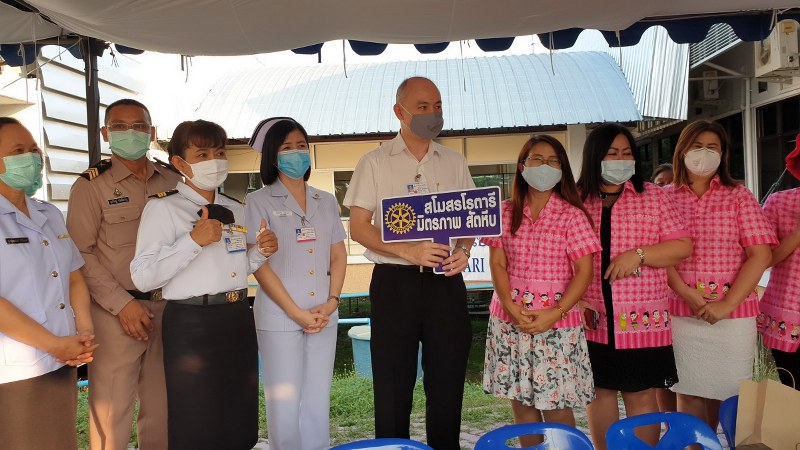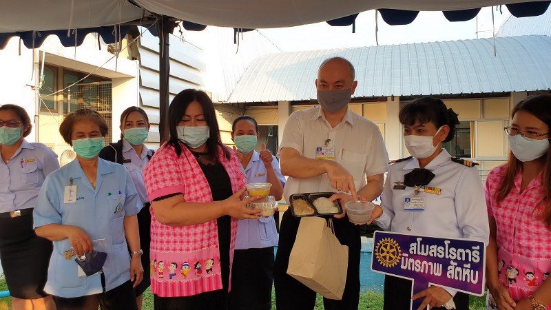 นายก จิรนันท์ ธรรมรงค์ นายกสโมสรโรตารี มิตรภาพ สัตหีบ ภาค 3340 โรตารีสากล พร้อมด้วยผู้ช่วยผู้ว่าการภาค แพรทอง สินชู, นายกรับเลือก รัมภาพรรณ์ อินมะโรง และสมาชิกสโมสรโรตารี่ มิตรภาพ สัตหีบ ยังคงเดินหน้านำอาหารพร้อมเครื่องดื่มและขนมหวาน มอบให้กับคณะแพทย์ พยาบาล และเจ้าหน้าที่บุคลากรทางการแพทย์ รพ.สมเด็จพระ นางเจ้าสิริกิตติ์ กรมแพทย์ทหารเรือ อ.สัตหีบ จ.ชลบุรี เพื่อเป็นขวัญและกำลังใจในการปฏิบัติหน้าที่อย่างต่อเนื่อง และสิ่งสำคัญบุคลากรทางการแพทย์ไม่ต้องเสียเวลาออกไปรับประทานอาหารนอกสถานที่ขณะดูแลรักษาผู้เจ็บป่วยอีกด้วย