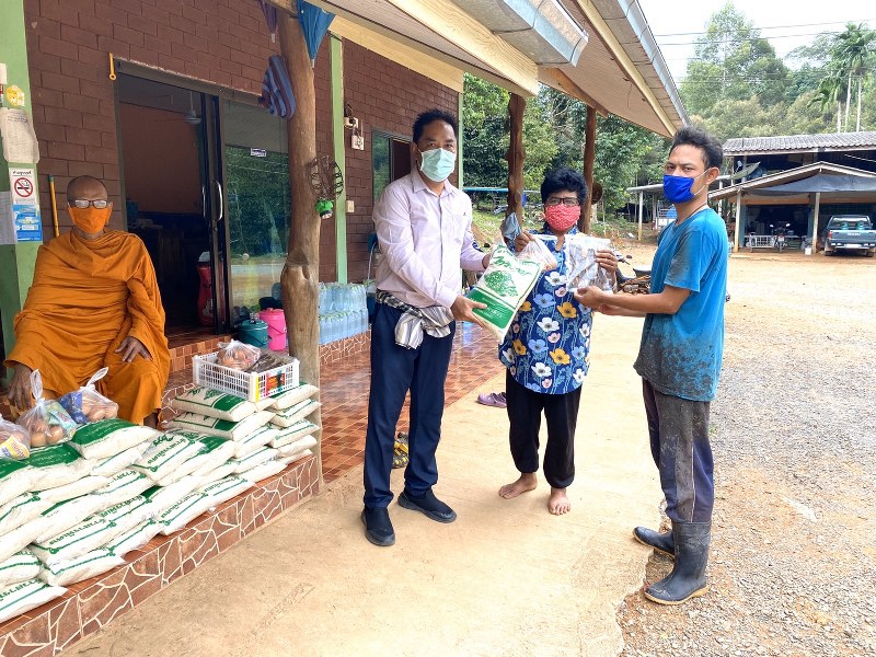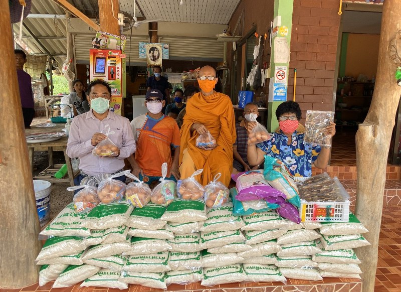 จังหวัดตราด-วันพุธที่ ๒๙ เมษายน ๒๕๖๓ เวลา ๐๙.๓๐ น. พระสุทิน ถิรธมโม วัดทองธรรมชาติ นายกิตติธัช ไชยอรรถ ที่ปรึกษากิตติมศักดิ์รองประธานสภาผู้แทนราษฏร คนที่หนึ่ง (สุชาติ ตันเจริญ) นางบรรจง จรัญญากร สมาชิก อบต. หมู่ ๗ แจกข้าวสาร ไข่ ปลาเค็ม ให้กับชาวบ้านไกล้เคียงวัด ตำบลคลองใหญ่ อำเภอแหลมงอบ จังหวัดตราด ให้กับผู้ได้รับผลกระทบจาก COVID-19 เพื่อให้สามารถใช้ชีวิตประจำวันอย่างปลอดภัย ภายใต้สถานการณ์การแพร่ระบาดของโรคติดเชื้อไวรัสโคโรนา ๒๐๑๙ (COVID-19)