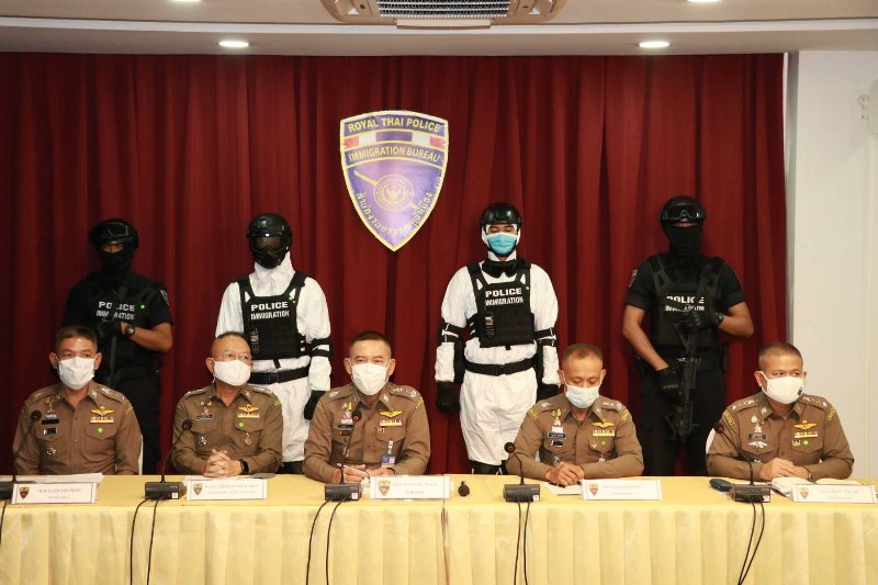 วันที่ 29 เม.ย.63 เวลา 10.30 น. ณ ห้องศูนย์ TIC ชั้น 4 อาคาร 1 สตม.(สวนพลู) สาธร กทม. : พล.ต.ท.สมพงษ์ ชิงดวง ผบช.สตม. พร้อมด้วย พล.ต.ต.สุรพงษ์ ชัยจันทร์ รอง ผบช.สตม., พล.ต.ต.ปฏิพัทธ์ สุบรรณ ณ อยุธยา รอง ผบช.ตชด. ปฏิบัติราชการ สตม. และ พ.ต.อ.อรุษ แสงจันทร์ รอง ผบก.ตม.6 แถลงข่าวการจับกุมตามหมายแก๊งกัมพูชา สมคบค้ามนุษย์ 3 ราย