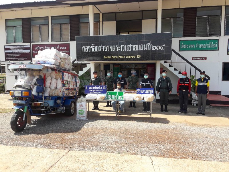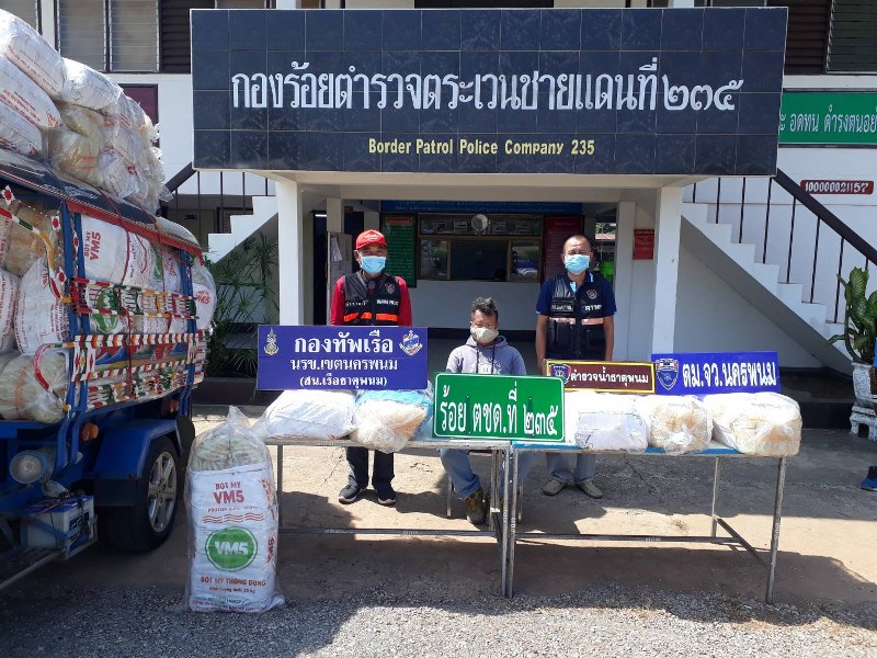 วันที่ 29 เมษายน 2563 จังหวัดนครพนม ร่วมกันบูรณาการ กองทัพเรือ นรข.เขตนครพนม (สน.เรือธาตุพนม) ร้อย ตชด.ที่ 235, ตำรวจน้ำธาตุพนม, ตม.จว.นครพม ได้ร่วมประสานงานชุดสืบสวนจับกุม นายไกลสวัสดิ์ มิควาฬ หรือ วัน อายุ 54 ปี ที่อยู่บ้านเลขที่ 180 หมู่ 10 ตำบลพระกลางทุ่ง อำเภอพระธาตุพนม จังหวัดนครพนม ในครั้งนี้ พร้อมของกลางคือ เส้นขนมจีนแห้งจำนวน 50 กระสอบ น้ำหนักรวมประมาณ 400 กิโลกรัม ตำแหน่งที่พบของกลางพบวางอยู่บริเวณช่องทางท่าข้ามธรรมชาติริมฝั่งแม่น้ำโขงพื้นที่ บ้านธาตุน้อย หมู่ 5 ตำบลพระกลางทุ่ง อำเภอพระธาตุพนม จังหวัดนครพนม ตรงจุดเกิดเหตุ