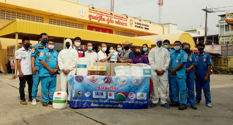ชมรมผู้เลี้ยงกุ้งตราดยั่งยืนสนับสนุนชุด PPE พร้อมยาฆ่าเชื้อ ให้สมาคมตราดพุทธสงเคราะห์ (หน่วยกู้ภัยหลักเกาะ) เพื่อใช้ในการออกปฏิบัติงานด้านการแพทย์ฉุกเฉิน