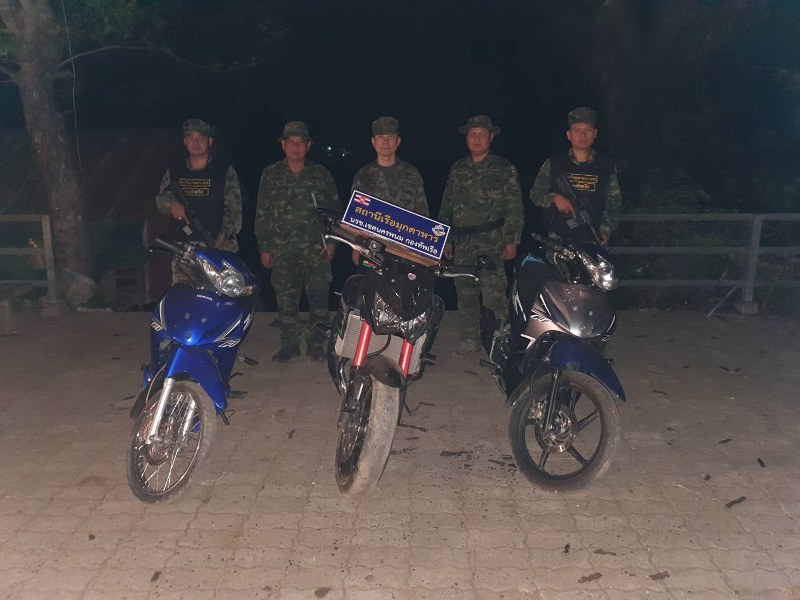 จากการตรวจสอบพบรถจักรยานยนต์ จำนวน 3 คัน ประกอบด้วย รถยี่ห้อ HONDA WAVE 100 จำนวน 2 คัน, รถยี่ห้อ KAWASAKI 800 จำนวน 1 คัน ไม่ติดแผ่นป้ายทะเบียน, ถูกลำเลียงลงบริเวณริมแม่โขง เพื่อเตรียมนำขึ้นเรือส่งข้ามไปขายยังประเทศเพื่อนบ้าน (สปป. ลาว) จึงได้ทำการตรวจยึดและนำกลับมาไว้ที่ สน.เรือมุกดาหาร เพื่อจะได้ตรวจสอบและประสาน จนท.ตำรวจ เพื่อดำเนินการทางกฎหมายต่อไป.
