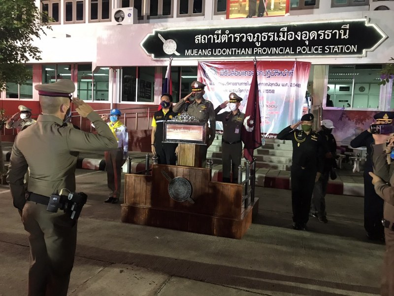 เวลา 21.45 น. เป็นประธานพิธีปล่อยแถวฯ บริเวณลานหน้า สภ.เมืองอุดรธานี โดยมี นายนิรัตน์ พงษ์สิทธิถาวร ผู้ว่าราชการจังหวัดอุดรธานี ร่วมในพิธี และได้ตรวจเยี่ยม สภ.เมืองอุดร ธานี