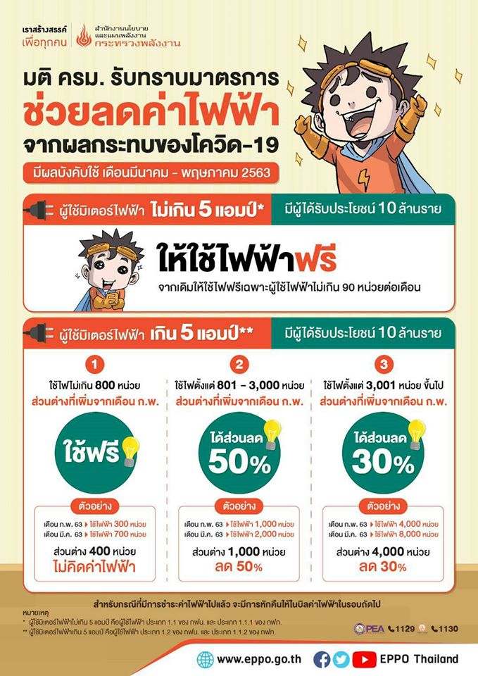 ข่าวใหม่อัพเดท » อยู่บ้าน หยุดเชื้อ เพื่อชาติ มาตรการลดค่าไฟฟ้า มาแล้ว…