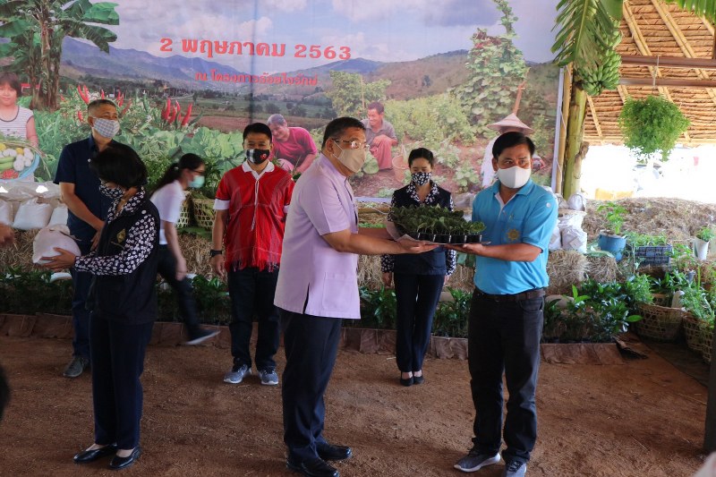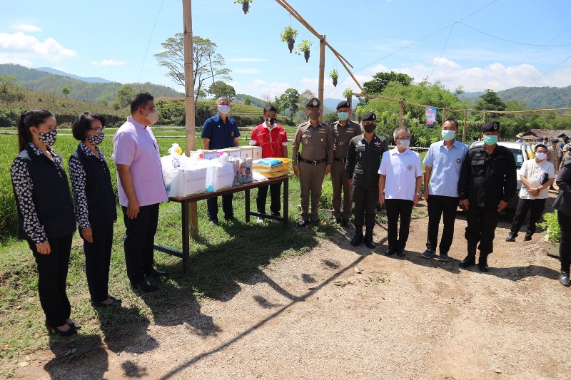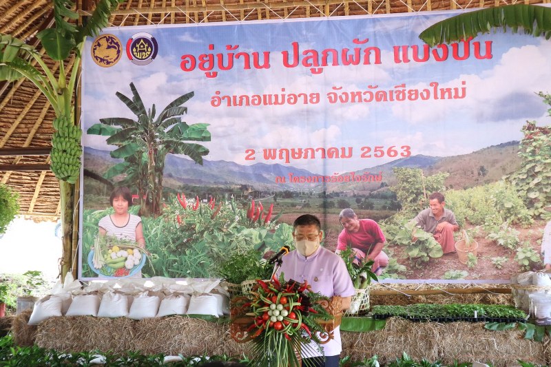 ผวจ.ชม.ตรวจเยี่ยมให้กำลังใจและมอบเครื่องอุปโภค-บริโภค เจลแอลกอฮอล์ล้างมือ กล้าพันธุ์ไม้ เมล็ดพันธุ์พืช รวมทั้งปุ๋ยอินทรีย์ ให้กับตัวแทนชาวบ้านและ จนท. ประจำจุดตรวจควบคุมการแพร่ระบาดโควิด-19 ณ โครงการร้อยใจรักษ์ ต.ท่าตอน อ.แม่อาย จ.เชียงใหม่