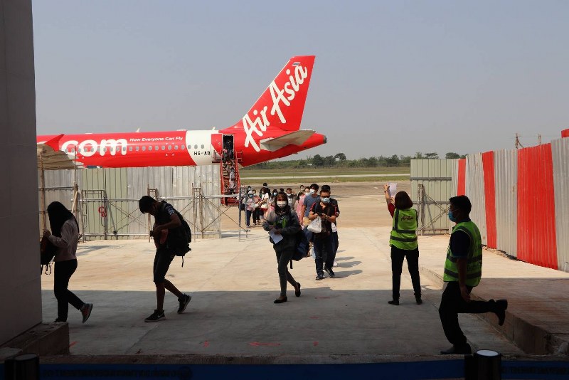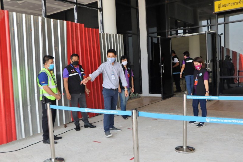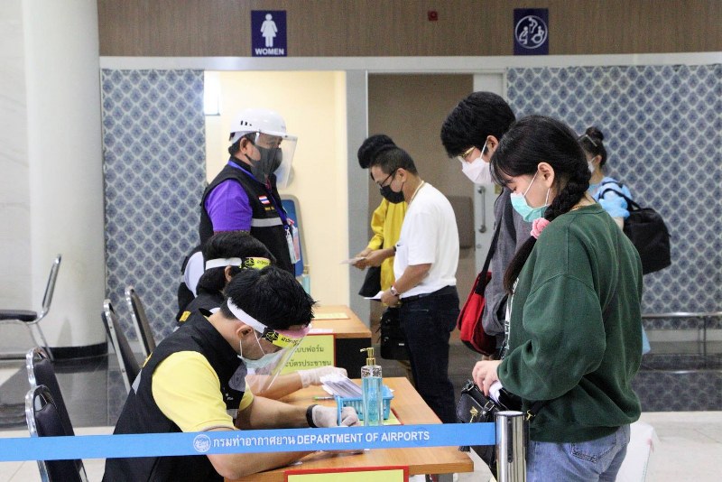 อนึ่ง กระทรวงคมนาคม เปิดเส้นทางการบินภายในประเทศ เพื่ออำนวยความสะดวกแก่ประชาชนที่จำเป็นต้องเดินทาง ในช่วงที่โรคโควิด-19 กำลังแพร่ระบาด โดยผู้ดำเนินการสนามบิน ต้องดำเนินการตรวจคัดกรองบุคคลที่เข้ามาใช้บริการในสนามบิน โดยตรวจสอบการสวมหน้ากากอนามัย ตรวจวัดอุณหภูมิร่างกาย ถ้าบุคคลนั้นไม่สวมหน้ากากอนามัยหรือวัดอุณหภูมิได้สูงกว่า 37.3 องศาเซลเซียส ให้ปฏิเสธการให้เข้าพื้นที่สนามบิน และจัดการเว้นระยะนั่งหรือยืนห่างกันอย่างน้อย 1 เมตร ในพื้นที่ต่าง ๆ เช่น พื้นที่ออกบัตรขึ้นเครื่อง พื้นที่ที่ผู้โดยสารรอขึ้นเครื่อง ในส่วนของผู้โดยสาร ต้องสวมหน้ากากอนามัยตลอดเวลาตั้งแต่ขึ้นเครื่องจนกว่าจะออกจากเครื่อง ระหว่างออกบัตรขึ้นเครื่อง ถ้าผู้โดยสารไม่มีหน้ากากอนามัย และไม่สามารถจัดหามาแสดงได้ จะถูกงดการออกบัตรขึ้นเครื่องให้ รวมทั้งห้ามรับประทานอาหารแลิะเครื่องดื่มที่นำติดตัวมาบนเครื่องบิน